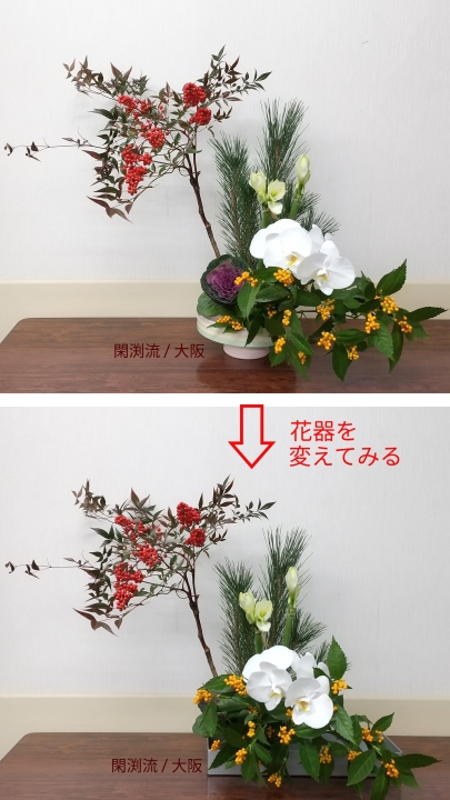 同じ花材でも使い方によって作品の雰囲気がぐんと変わり・・・。