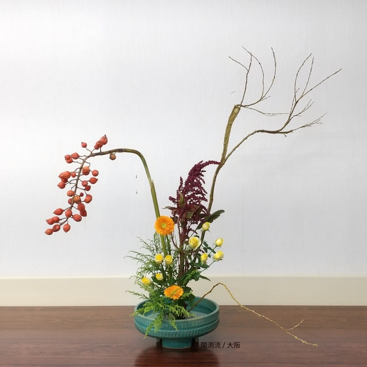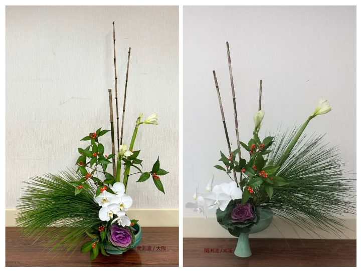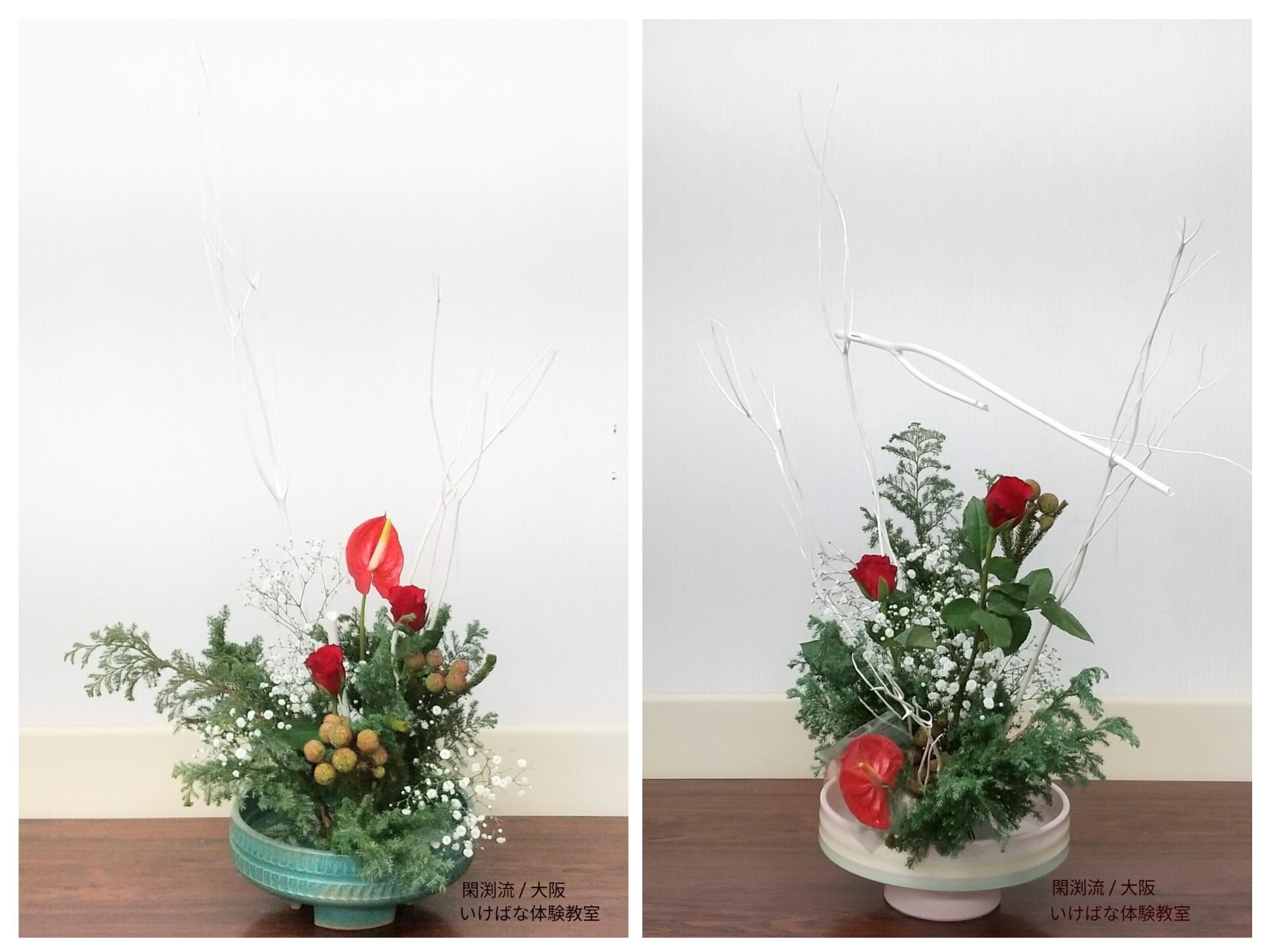 これまで学んできたそれぞれの学習状況に応じて、使う花器・花材・生け方・花型は自由。