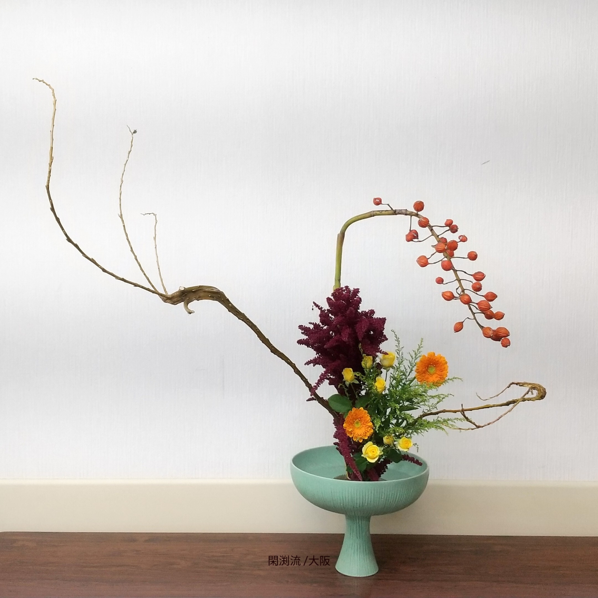 ちょっと難易度の高い生け方でしたが、頑張りました♪