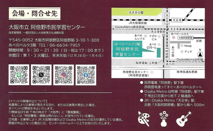 阿倍野市民学習センターの受付カウンターにてエントリーされてみてくださいね。