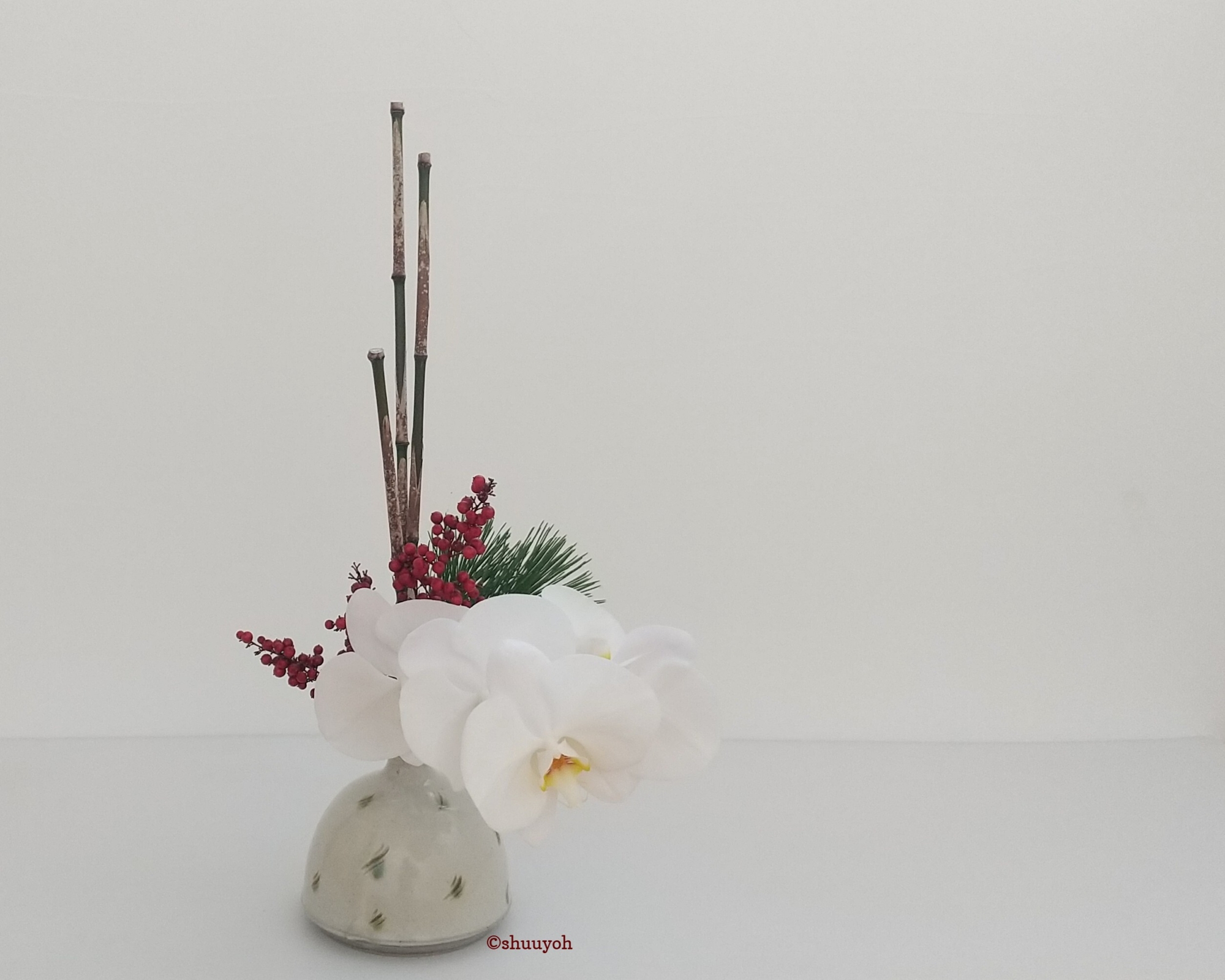 【お正月の小品花】 寒竹 南天の実 小松 胡蝶蘭